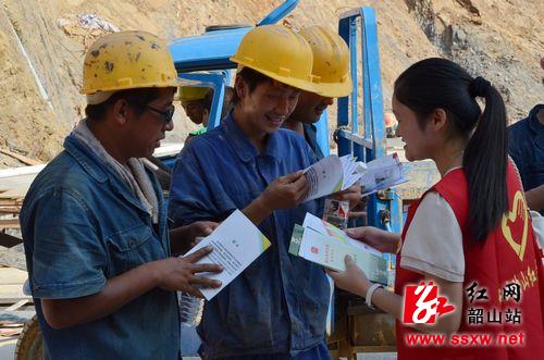 当天,参与活动的单位均抽调出工作人员,组织成立了“映山红”关爱进城务工人员志愿服务队,开展关爱进城务工人员志愿服务活动。这支由医务人员、司法工作者、安全生产监管人员、文艺爱好者及热心公益的人士组成的志愿者队伍,先后来到润泽东方、韶南安置区、火车站等地,围绕身心健康、劳动维权、安全生产、文化娱乐、文明素质、情感关怀等为务工人员提供志愿服务。