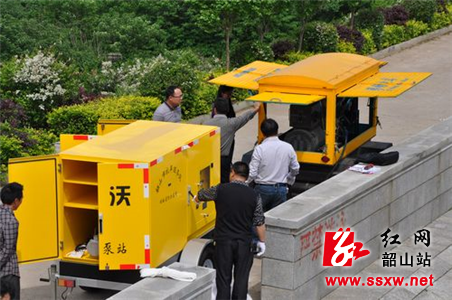 现场技术人员向记者表示,此套防汛抗旱设备具有操作简便,移动方便,效率较高的特点,汛时可排涝、旱时可灌溉的双重功用。