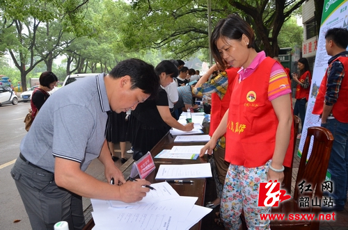 6月5日是第43个世界环境日。今年,国家环境保护部确定的宣传主题为“向污染宣战”,韶山市的宣传主题为“向污染宣战,从我做起”。这天,由韶山市环保部门牵头,组织林业、药监、团委、火车站社区等相关单位,开展了系列活动,宣传环保知识,增强广大市民的环保意识。