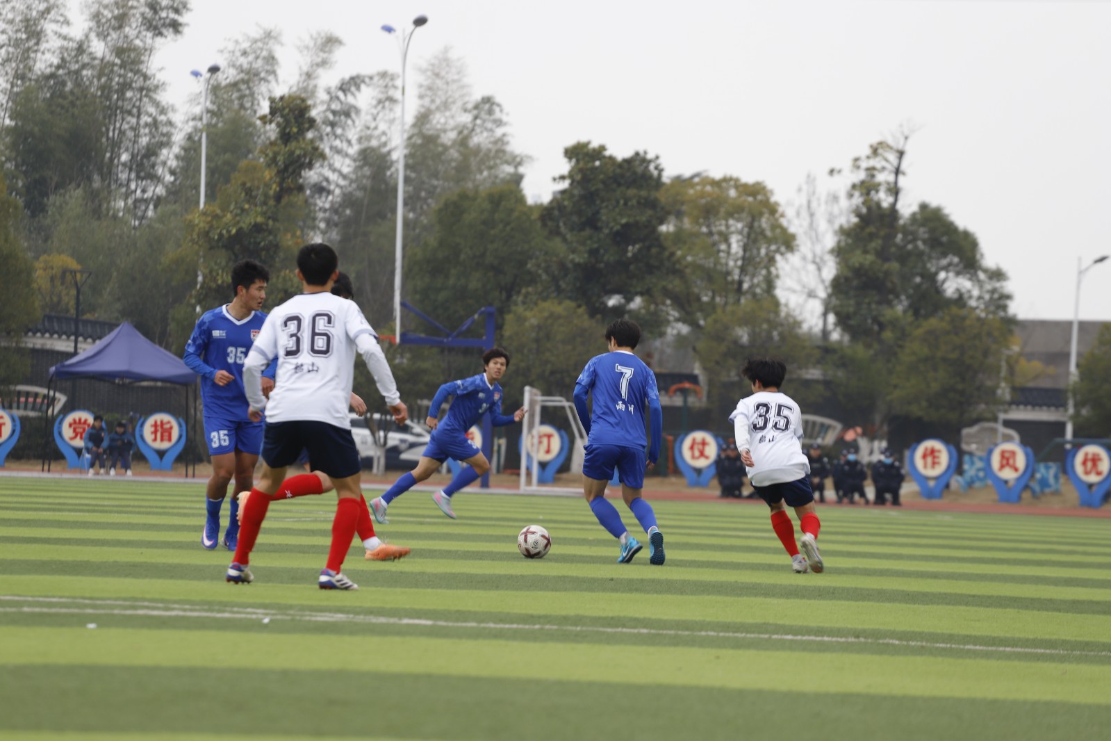 进入下半场,雨湖区队的进攻浪潮并未停歇。下半场开始仅6分钟,46号球员杨展溢成功破门,将比分改写为3:0,进一步巩固了胜势。比赛末段,韶山队体能下降,防守出现空隙,雨湖区队乘胜追击。第85分钟,15号球员肖勇颖攻入球队第四球。终场哨响前,19号球员贺元杰锦上添花,将最终比分锁定为5:0。